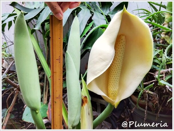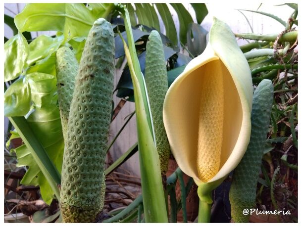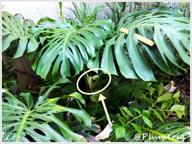 お庭でモンステラのお花が咲くなんてびっくり(*‘ω‘ *)