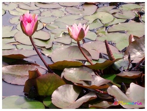 スイレンは茎が多少水面から伸びても葉は水上にあります。🌻スイレンの葉と花